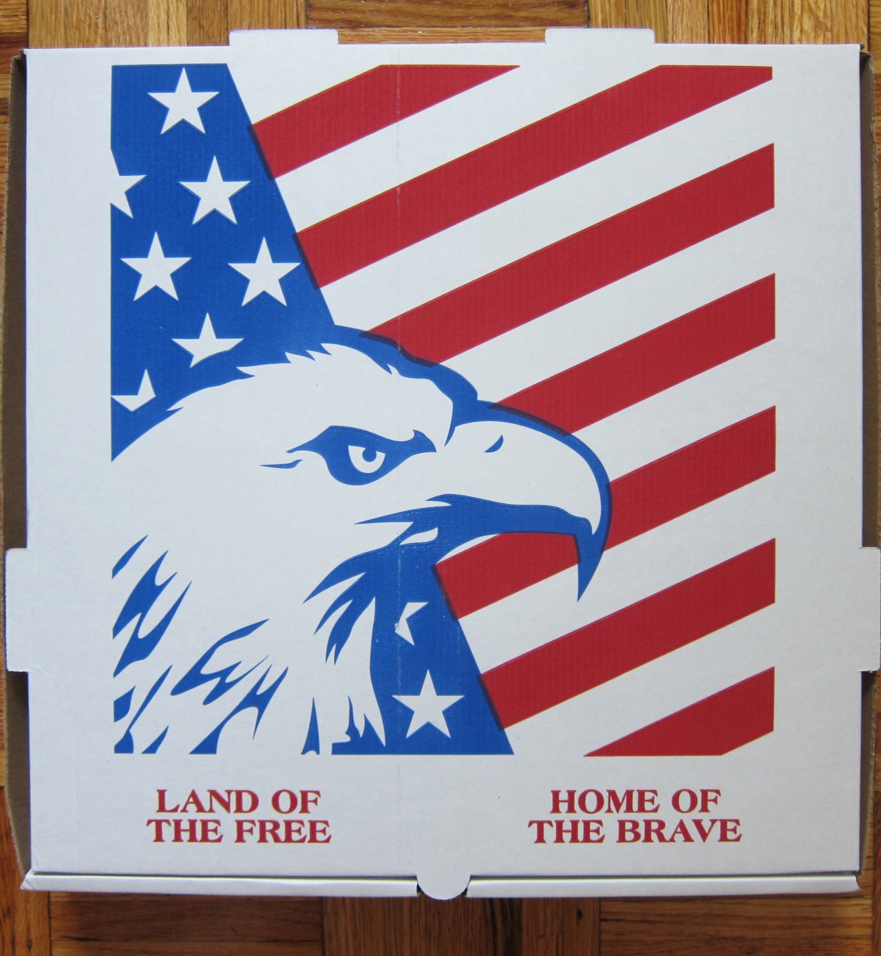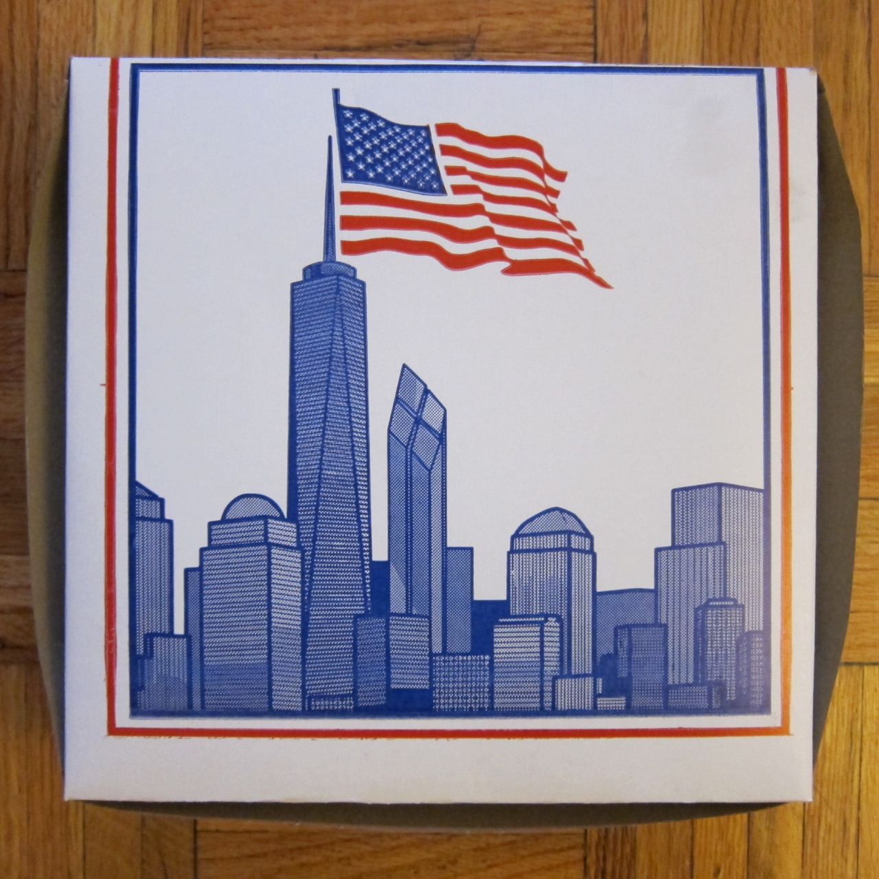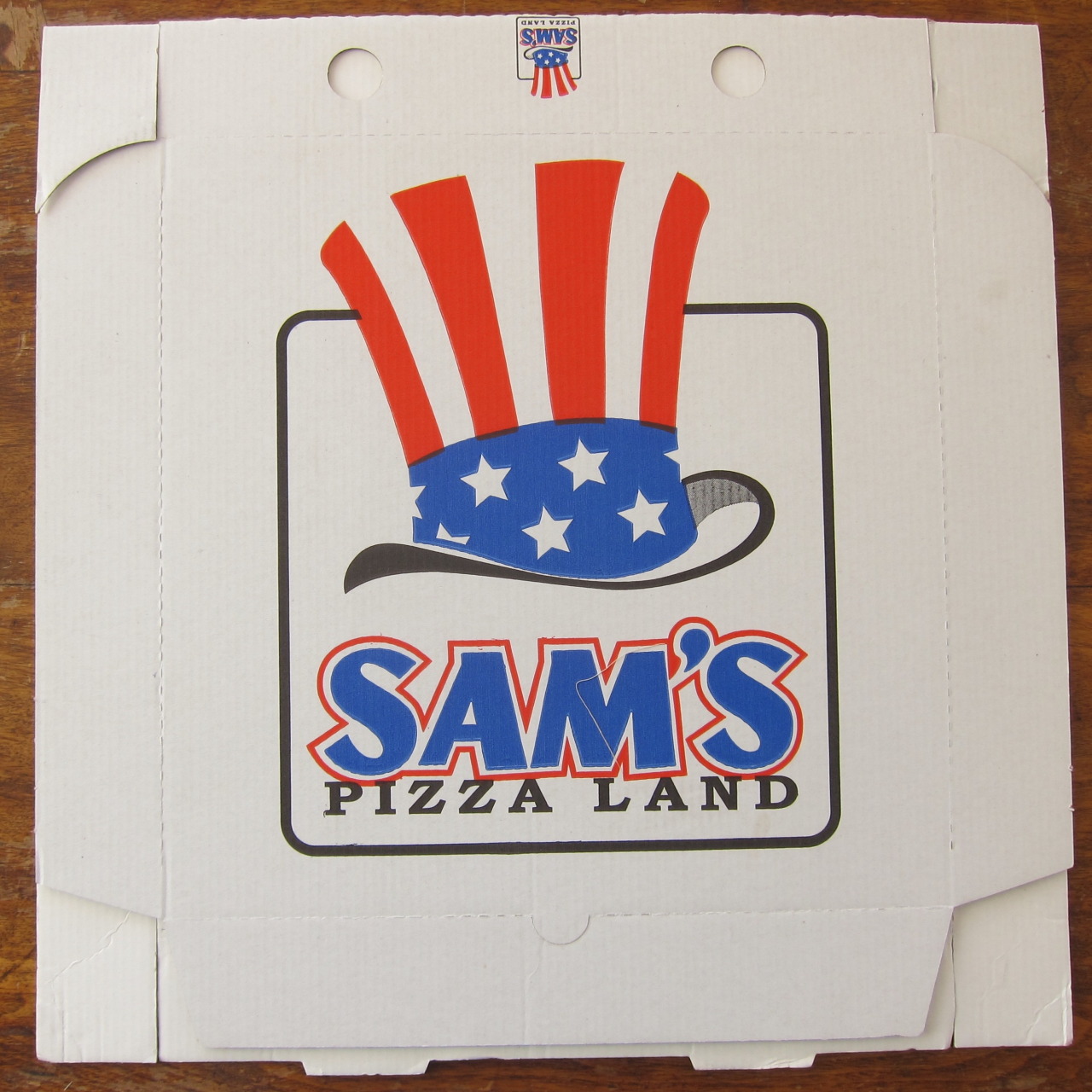 A smattering of patriotic pizza boxes, even though Sam’s Pizza Land is in Switzerland.
