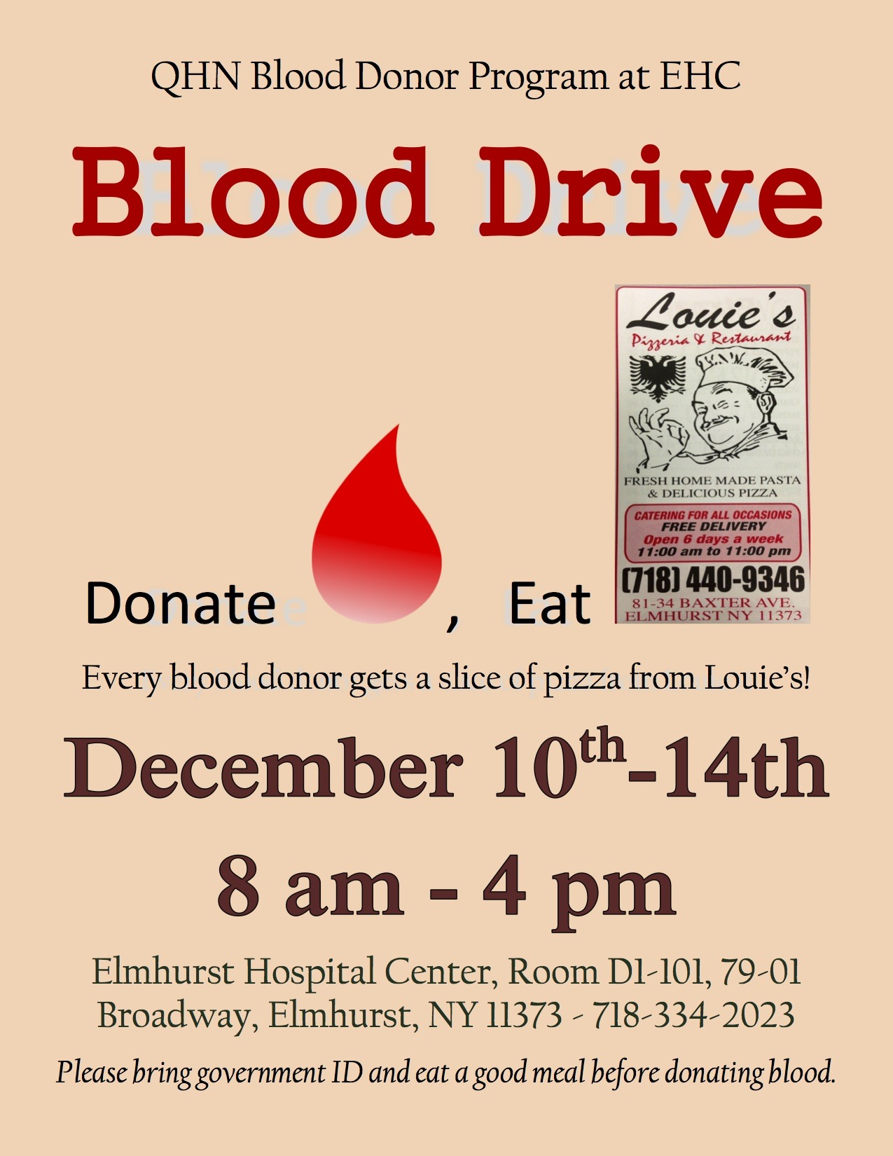 Get a free slice for donating blood in Queens!