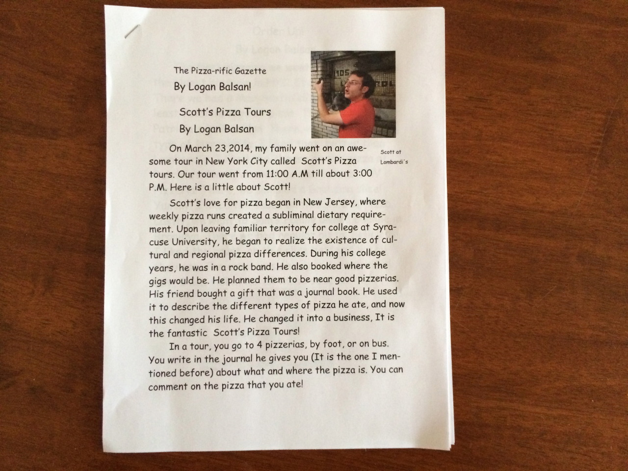 Here’s an amazing school project created by a recent tour guest, 10 year old Logan Balsan!