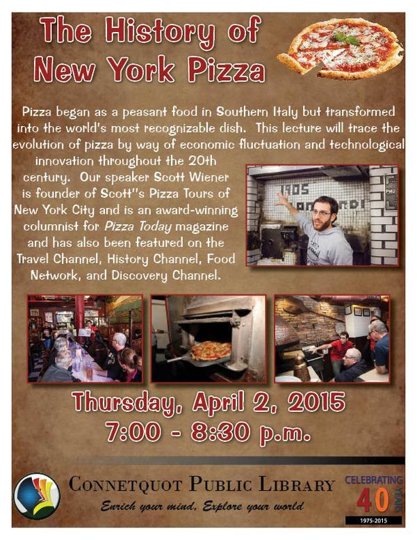 I’m speaking at the Connetquot Public Library (Long Island) tonight at 7pm and going to at least two pizzerias after. You’re either with me or against me.