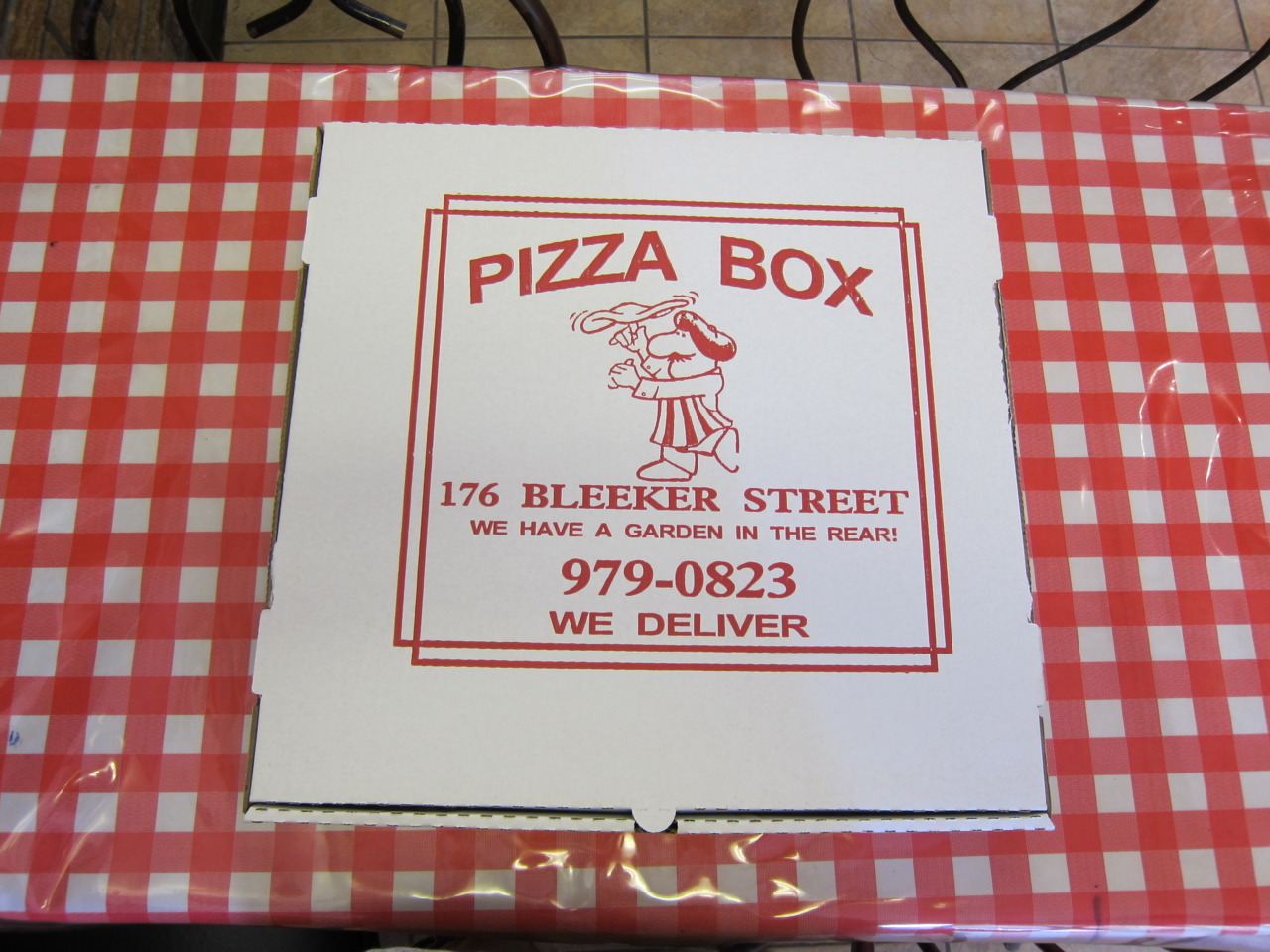 Not only is this a pizza box from a pizzeria called Pizza Box, but the street name is also spelled wrong. AND they have a garden in the rear. So many levels of entertainment!
