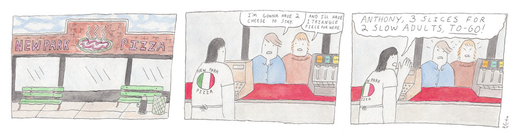 Really into this comic by Matt Volz in the current Lucky Peach. Also, New Park Pizza is awesome.