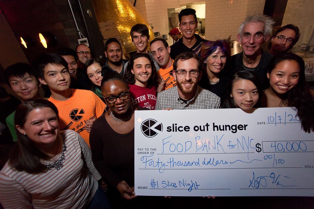 The final tally is in from this year’s Slice Out Hunger $1 Slice Night! Looks like we raised $40,000 for Food Bank For New York City. This amount will help Food Bank sponsor a whopping 200,000 meals for New Yorkers in need. Special thanks to all our sponsors, pizzerias, volunteers, and attendees.